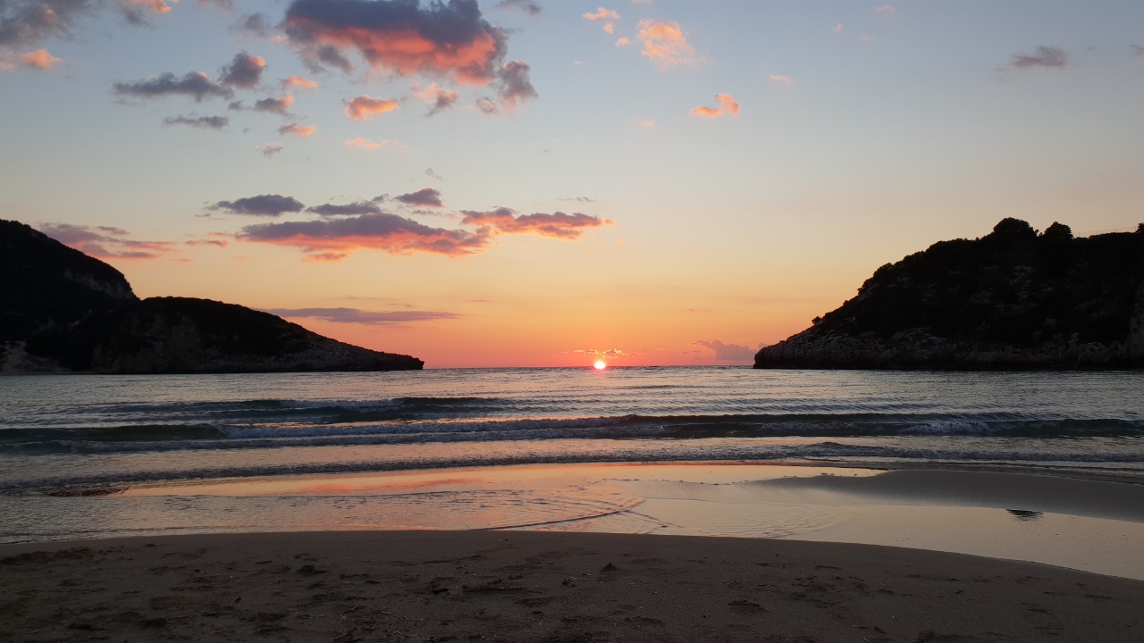 Und stürzen uns mit umso mehr Eifer in unseren anderen Plan: Ab Mittwoch wollen wir sechs der acht Etappen des Menalon Trails wandern. Vier Tage haben wir für die knapp 50 Kilometer und 2.800 Höhenmeter durch die verwunschene Bergwelt Arkadiens eingeplant, Unterkünfte kontaktiert, die Versorgungslage gecheckt – da keine Restaurants geöffnet sind, müssen wir uns unterwegs selbst versorgen – und auf Webcams geprüft, ob die Gegend schneefrei ist (ist sie). Montag und Dienstag wollen wir in der Nähe des Trailstarts noch zu einem Wasserfall und in einen alten Eichenwald. Als wir uns Samstagabend mit diesem Plan in der Tasche auf die Couch setzen, kommt über Instagram eine Nachricht von Kevin, der mit zum Orga-Team des Beach Cleanups gehört: Wir sind mit ein paar anderen in der Ochsenbauchbucht, kommt doch dazu. Das lassen wir uns nicht zweimal sagen! Verschieben Wasserfall und Eichenwald auf irgendwann demnächst und fahren am nächsten Tag – gestern – los Richtung Westküste. Kommen im goldenen Licht des späten Nachmittags in der Ochsenbauchbucht an und werden eingesogen von dem berauschenden Gefühl, unter Menschen zu sein. Menschen, die das selbe tun, wie wir: reisen, im Bus leben, gerade Griechenland erkunden und versuchen, dem Lockdown ein Schnippchen zu schlagen. Die Sonne geht unter, von irgendwo stehen plötzlich ein Tisch, ein Laptop und Turntables am Strand, Marc legt Musik auf, jeder hat eine Flasche Bier in der Hand, ein Lagerfeuer brennt und wir stellen Fragen, hören die Geschichten der anderen, reden und lachen und tanzen. Seit unserer Abschiedsparty im September in Deutschland haben wir so etwas nicht gehabt – wir genießen jede Minute!