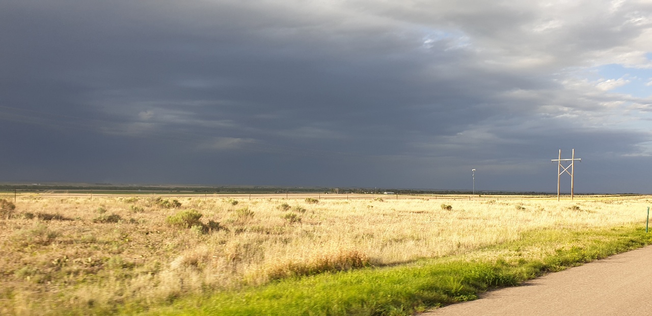 Colorado hat uns bereits gestern mit fantastischen Farben empfangen. Tagelang begleiten uns zuvor friesisch-flaches, saftiges Weideland und frische Grüntöne. Je weiter westlich wir in Nebraska kommen, desto staubiger und gelblicher wird das Grün – und als wir die Grenze zu Colorado überqueren, verändert sich die Landschaft völlig. Trockener Boden und von struppigem, gelben Gras bewachsene Hügel werden von einem weiten Himmel überspannt, an dem sich Gewitterwolken und Sonnenfetzen eine wilde Verfolgungsjagd liefern. Heute dann, auf der Fahrt weiter westwärts, wird das Land wieder grüner, und wie ein zartes Band aus Wolkenfetzen taucht am dunstigen Horizont die gewaltige Bergkette der Südlichen Rocky Mountains auf. Mehr als 50 Gipfel liegen hier über 4.000 m, ihre Spitzen tragen noch die Schneekronen des vergangenen Winters. Aus irgendeinem Grund, den ich mir selbst nicht erklären kann, hatte ich die Rockies eigentlich gar nicht als Ziel im Visir. Ich war so fokussiert auf die Canyonlands, dass ich das gigantische Gebirge auf dem Weg dorthin einfach übersehen habe. Erst, als wir in Nebraska einen Pausetag einlegen und ich meine Karten und Wanderführer wälze, bemerke ich meinen Fauxpas und wir planen um.