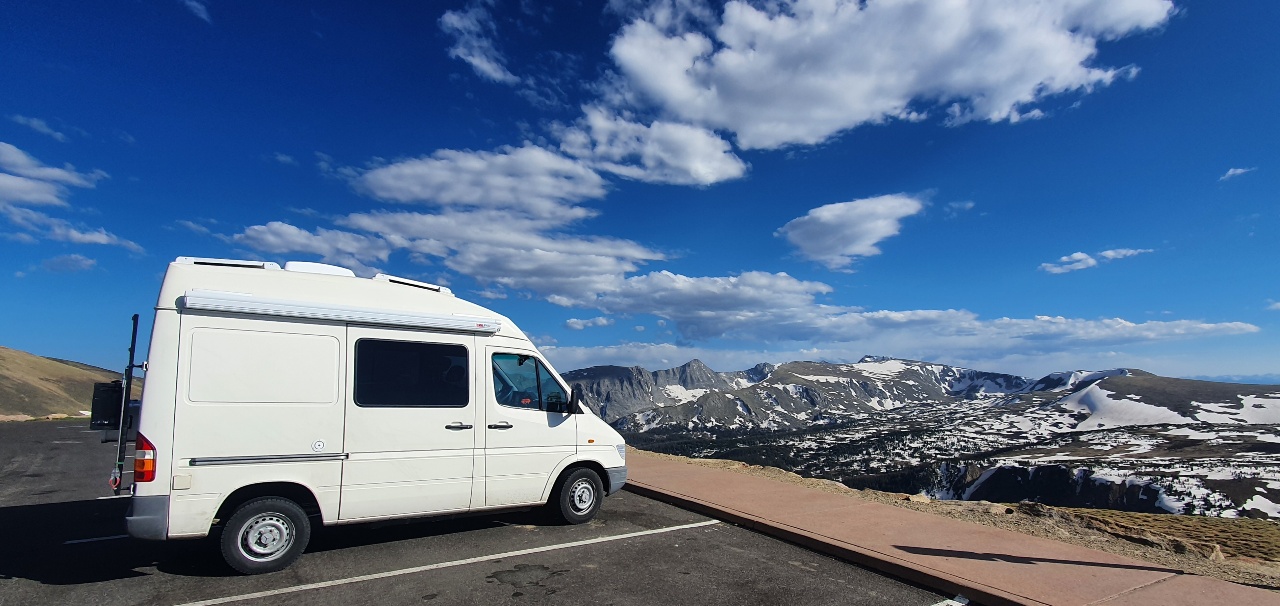 Und weil es so unglaublich schön ist hier, hängen wir einfach noch einen Tag dran. Waschen im hübschen Städtchen Estes Park – touristischer Ausgangspunkt für Park-Besuche vom Nord-Osten aus – Wäsche in einem Waschsalon mit Ausblick in die Berge, trödeln durch einen Outdoor-Laden und ein Souveniergschäft, essen Lunch und schauen, wann immer wir die Köpfe heben, auf die schneebedeckten Gipfel der Rockies. Steigen dann am Nachmittag noch mal in den Bus und fahren die Trail Ridge Road entlang durch den Norden des Parks: Bis auf 3.700 m geht die Panoramaroute, die Höhe macht meinen Magen flau und meinen Kopf schwindelig. Aber die Ausblicke sind es sowas von wert!